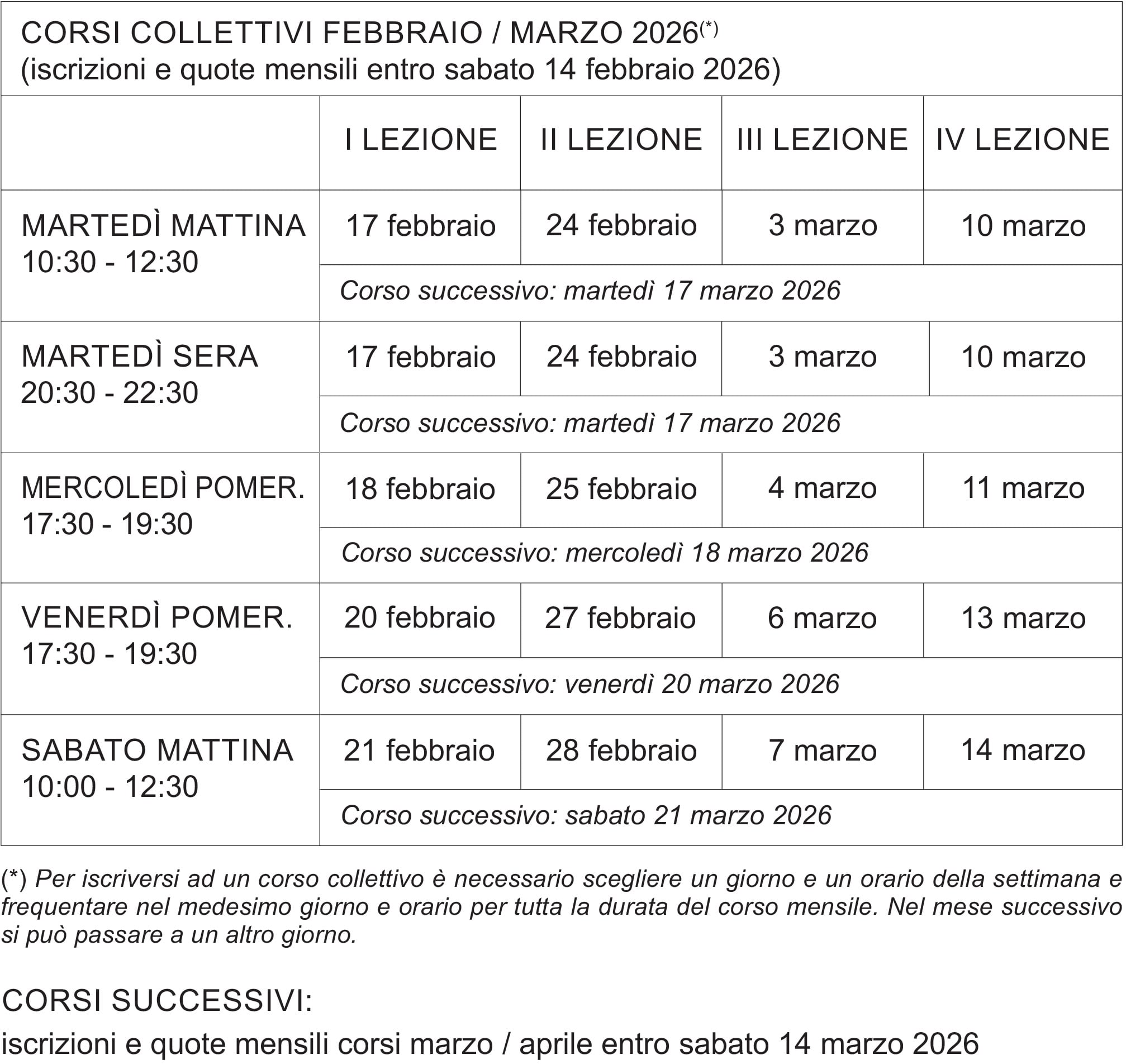 Orari corsi collettivi